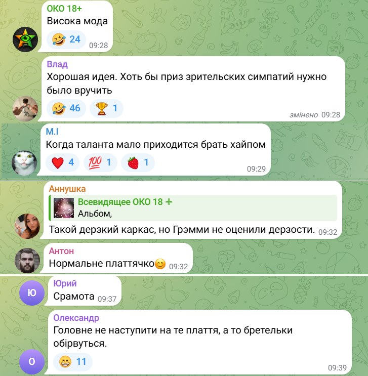 У коментарях до фото і відео зі співачкою в цій незвичайній сукні користувачі написали: